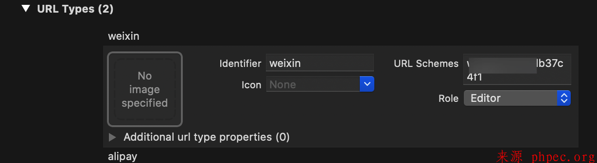 另外说明一下alipay的配置,也是url types 那里,配置 alipay => identifier